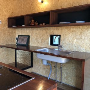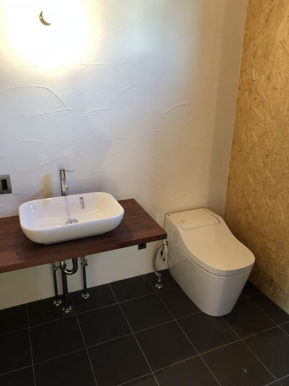 自然の感じられる素材と経年による風合いを楽しみたいとのことで、いわゆる現在の住宅における仕上げ材はほとんど使用していません。床材や内壁、天井も木材の現し仕上げでクロスの施工もなくインダストリアルな空間にこだわりました。